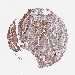 Antibody staining in the annotated cell types in the current human tissue is reported as not detected, low, medium, or high, based on conventional immunohistochemistry profiling in selected tissues. This score is based on the combination of the staining intensity and fraction of stained cells.