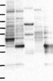 A Western blot analysis is performed on a panel of human tissues and cell lines to evaluate antibody specificity. For antibodies with unreliable result a revalidation using an over-expression lysate is performed.