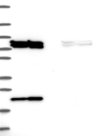 A Western blot analysis is performed on a panel of human tissues and cell lines to evaluate antibody specificity. For antibodies with unreliable result a revalidation using an over-expression lysate is performed.