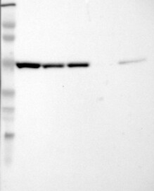 A Western blot analysis is performed on a panel of human tissues and cell lines to evaluate antibody specificity. For antibodies with unreliable result a revalidation using an over-expression lysate is performed.