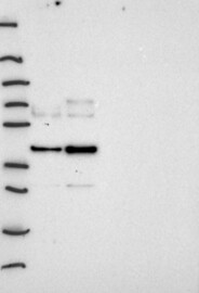 A Western blot analysis is performed on a panel of human tissues and cell lines to evaluate antibody specificity. For antibodies with unreliable result a revalidation using an over-expression lysate is performed.