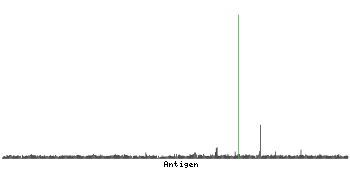 At the top of the view, the position of the antigen (identified by the corresponding HPA identifier) is shown as a green bar. A yellow triangle on the bar indicates a <100% sequence identity to the protein target.