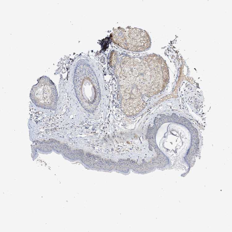 Antibody staining in the annotated cell types in the current human tissue is reported as not detected, low, medium, or high, based on conventional immunohistochemistry profiling in selected tissues. This score is based on the combination of the staining intensity and fraction of stained cells.