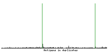 At the top of the view, the position of the antigen (identified by the corresponding HPA identifier) is shown as a green bar. A yellow triangle on the bar indicates a <100% sequence identity to the protein target.