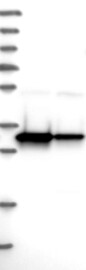 A Western blot analysis is performed on a panel of human tissues and cell lines to evaluate antibody specificity. For antibodies with unreliable result a revalidation using an over-expression lysate is performed.