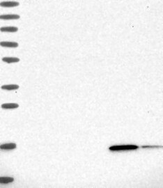 A Western blot analysis is performed on a panel of human tissues and cell lines to evaluate antibody specificity. For antibodies with unreliable result a revalidation using an over-expression lysate is performed.