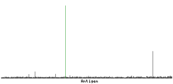 At the top of the view, the position of the antigen (identified by the corresponding HPA identifier) is shown as a green bar. A yellow triangle on the bar indicates a <100% sequence identity to the protein target.