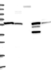 A Western blot analysis is performed on a panel of human tissues and cell lines to evaluate antibody specificity. For antibodies with unreliable result a revalidation using an over-expression lysate is performed.