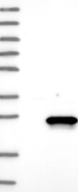A Western blot analysis is performed on a panel of human tissues and cell lines to evaluate antibody specificity. For antibodies with unreliable result a revalidation using an over-expression lysate is performed.