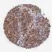 Antibody staining in the annotated cell types in the current human tissue is reported as not detected, low, medium, or high, based on conventional immunohistochemistry profiling in selected tissues. This score is based on the combination of the staining intensity and fraction of stained cells.