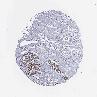Antibody staining in the annotated cell types in the current human tissue is reported as not detected, low, medium, or high, based on conventional immunohistochemistry profiling in selected tissues. This score is based on the combination of the staining intensity and fraction of stained cells.