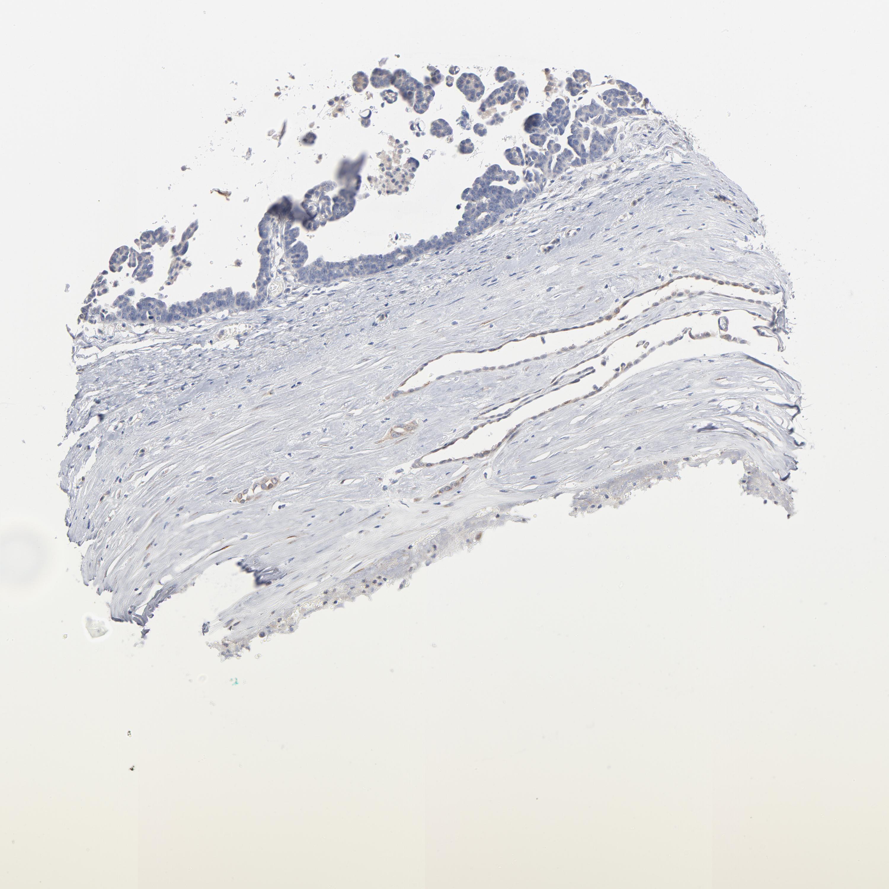 Antibody staining in the annotated cell types in the current human tissue is reported as not detected, low, medium, or high, based on conventional immunohistochemistry profiling in selected tissues. This score is based on the combination of the staining intensity and fraction of stained cells.