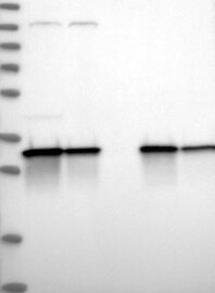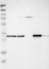 A Western blot analysis is performed on a panel of human tissues and cell lines to evaluate antibody specificity. For antibodies with unreliable result a revalidation using an over-expression lysate is performed.