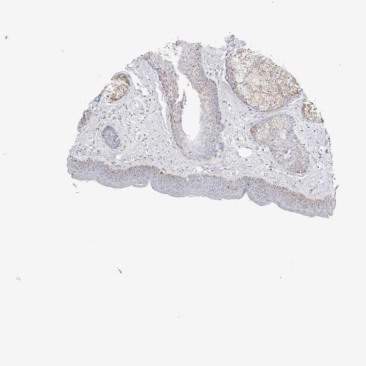 Antibody staining in the annotated cell types in the current human tissue is reported as not detected, low, medium, or high, based on conventional immunohistochemistry profiling in selected tissues. This score is based on the combination of the staining intensity and fraction of stained cells.
