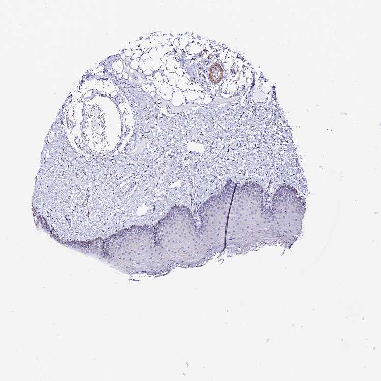 Antibody staining in the annotated cell types in the current human tissue is reported as not detected, low, medium, or high, based on conventional immunohistochemistry profiling in selected tissues. This score is based on the combination of the staining intensity and fraction of stained cells.