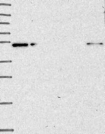 A Western blot analysis is performed on a panel of human tissues and cell lines to evaluate antibody specificity. For antibodies with unreliable result a revalidation using an over-expression lysate is performed.