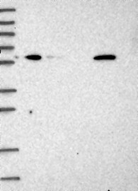 A Western blot analysis is performed on a panel of human tissues and cell lines to evaluate antibody specificity. For antibodies with unreliable result a revalidation using an over-expression lysate is performed.