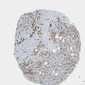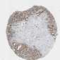 Antibody staining in the annotated cell types in the current human tissue is reported as not detected, low, medium, or high, based on conventional immunohistochemistry profiling in selected tissues. This score is based on the combination of the staining intensity and fraction of stained cells.