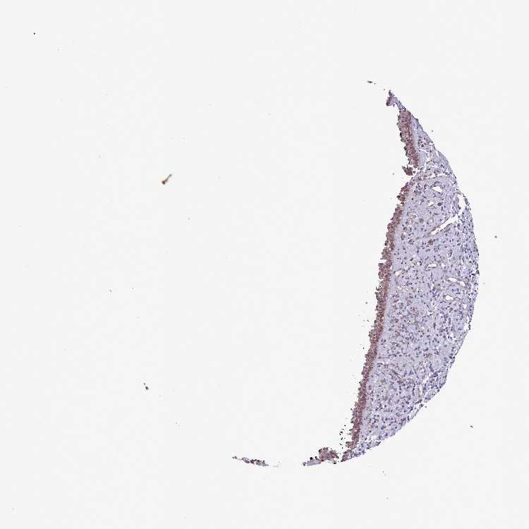 Antibody staining in the annotated cell types in the current human tissue is reported as not detected, low, medium, or high, based on conventional immunohistochemistry profiling in selected tissues. This score is based on the combination of the staining intensity and fraction of stained cells.