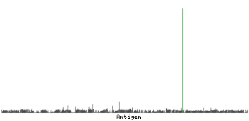 At the top of the view, the position of the antigen (identified by the corresponding HPA identifier) is shown as a green bar. A yellow triangle on the bar indicates a <100% sequence identity to the protein target.