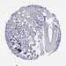 Antibody staining in the annotated cell types in the current human tissue is reported as not detected, low, medium, or high, based on conventional immunohistochemistry profiling in selected tissues. This score is based on the combination of the staining intensity and fraction of stained cells.