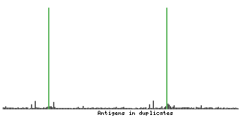 At the top of the view, the position of the antigen (identified by the corresponding HPA identifier) is shown as a green bar. A yellow triangle on the bar indicates a <100% sequence identity to the protein target.