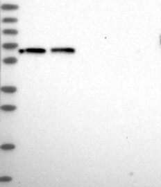A Western blot analysis is performed on a panel of human tissues and cell lines to evaluate antibody specificity. For antibodies with unreliable result a revalidation using an over-expression lysate is performed.