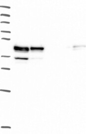 A Western blot analysis is performed on a panel of human tissues and cell lines to evaluate antibody specificity. For antibodies with unreliable result a revalidation using an over-expression lysate is performed.