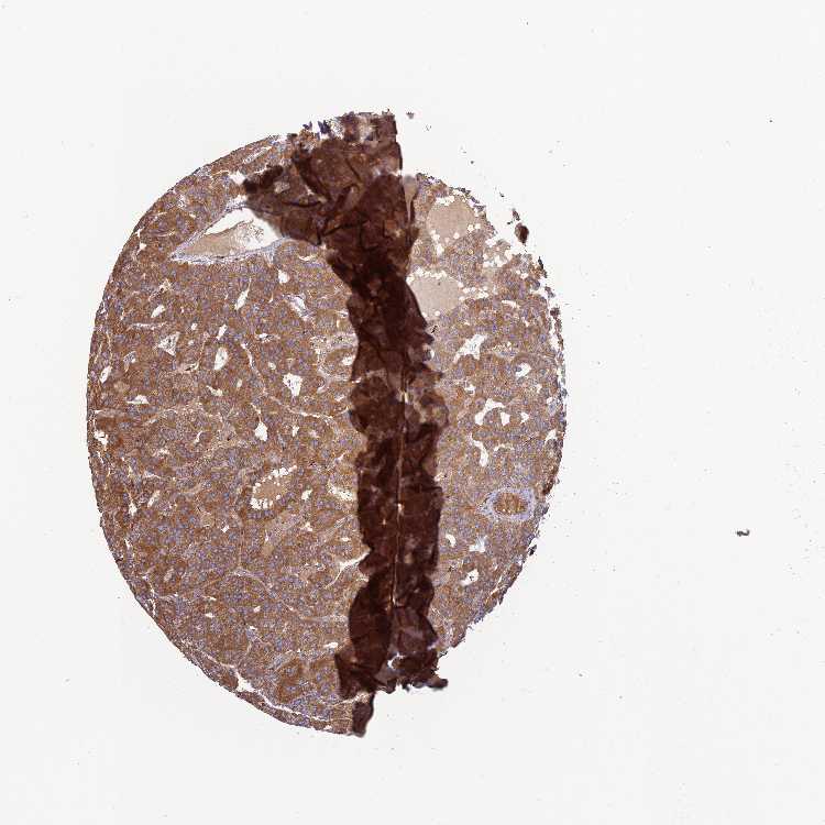 Antibody staining in the annotated cell types in the current human tissue is reported as not detected, low, medium, or high, based on conventional immunohistochemistry profiling in selected tissues. This score is based on the combination of the staining intensity and fraction of stained cells.