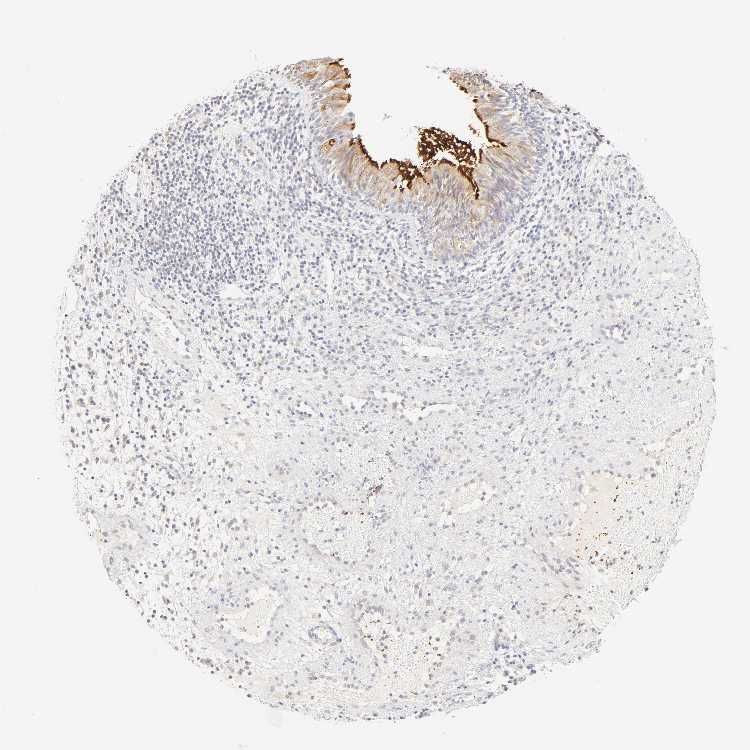 Antibody staining in the annotated cell types in the current human tissue is reported as not detected, low, medium, or high, based on conventional immunohistochemistry profiling in selected tissues. This score is based on the combination of the staining intensity and fraction of stained cells.