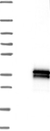 A Western blot analysis is performed on a panel of human tissues and cell lines to evaluate antibody specificity. For antibodies with unreliable result a revalidation using an over-expression lysate is performed.