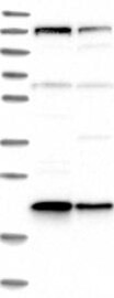 A Western blot analysis is performed on a panel of human tissues and cell lines to evaluate antibody specificity. For antibodies with unreliable result a revalidation using an over-expression lysate is performed.
