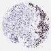 Antibody staining in the annotated cell types in the current human tissue is reported as not detected, low, medium, or high, based on conventional immunohistochemistry profiling in selected tissues. This score is based on the combination of the staining intensity and fraction of stained cells.