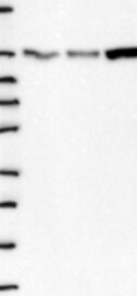A Western blot analysis is performed on a panel of human tissues and cell lines to evaluate antibody specificity. For antibodies with unreliable result a revalidation using an over-expression lysate is performed.