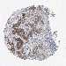 Antibody staining in the annotated cell types in the current human tissue is reported as not detected, low, medium, or high, based on conventional immunohistochemistry profiling in selected tissues. This score is based on the combination of the staining intensity and fraction of stained cells.