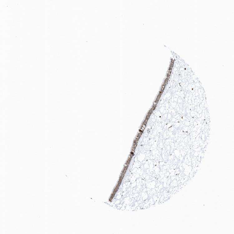 Antibody staining in the annotated cell types in the current human tissue is reported as not detected, low, medium, or high, based on conventional immunohistochemistry profiling in selected tissues. This score is based on the combination of the staining intensity and fraction of stained cells.