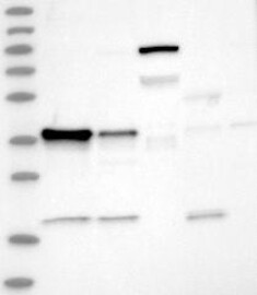 A Western blot analysis is performed on a panel of human tissues and cell lines to evaluate antibody specificity. For antibodies with unreliable result a revalidation using an over-expression lysate is performed.