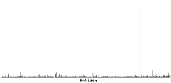 At the top of the view, the position of the antigen (identified by the corresponding HPA identifier) is shown as a green bar. A yellow triangle on the bar indicates a <100% sequence identity to the protein target.