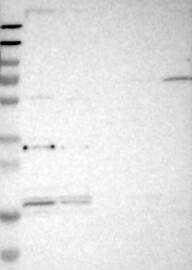 A Western blot analysis is performed on a panel of human tissues and cell lines to evaluate antibody specificity. For antibodies with unreliable result a revalidation using an over-expression lysate is performed.