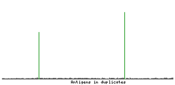 At the top of the view, the position of the antigen (identified by the corresponding HPA identifier) is shown as a green bar. A yellow triangle on the bar indicates a <100% sequence identity to the protein target.