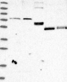 A Western blot analysis is performed on a panel of human tissues and cell lines to evaluate antibody specificity. For antibodies with unreliable result a revalidation using an over-expression lysate is performed.