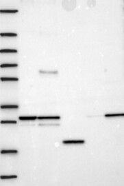 A Western blot analysis is performed on a panel of human tissues and cell lines to evaluate antibody specificity. For antibodies with unreliable result a revalidation using an over-expression lysate is performed.