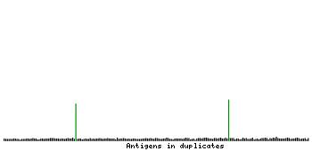 At the top of the view, the position of the antigen (identified by the corresponding HPA identifier) is shown as a green bar. A yellow triangle on the bar indicates a <100% sequence identity to the protein target.