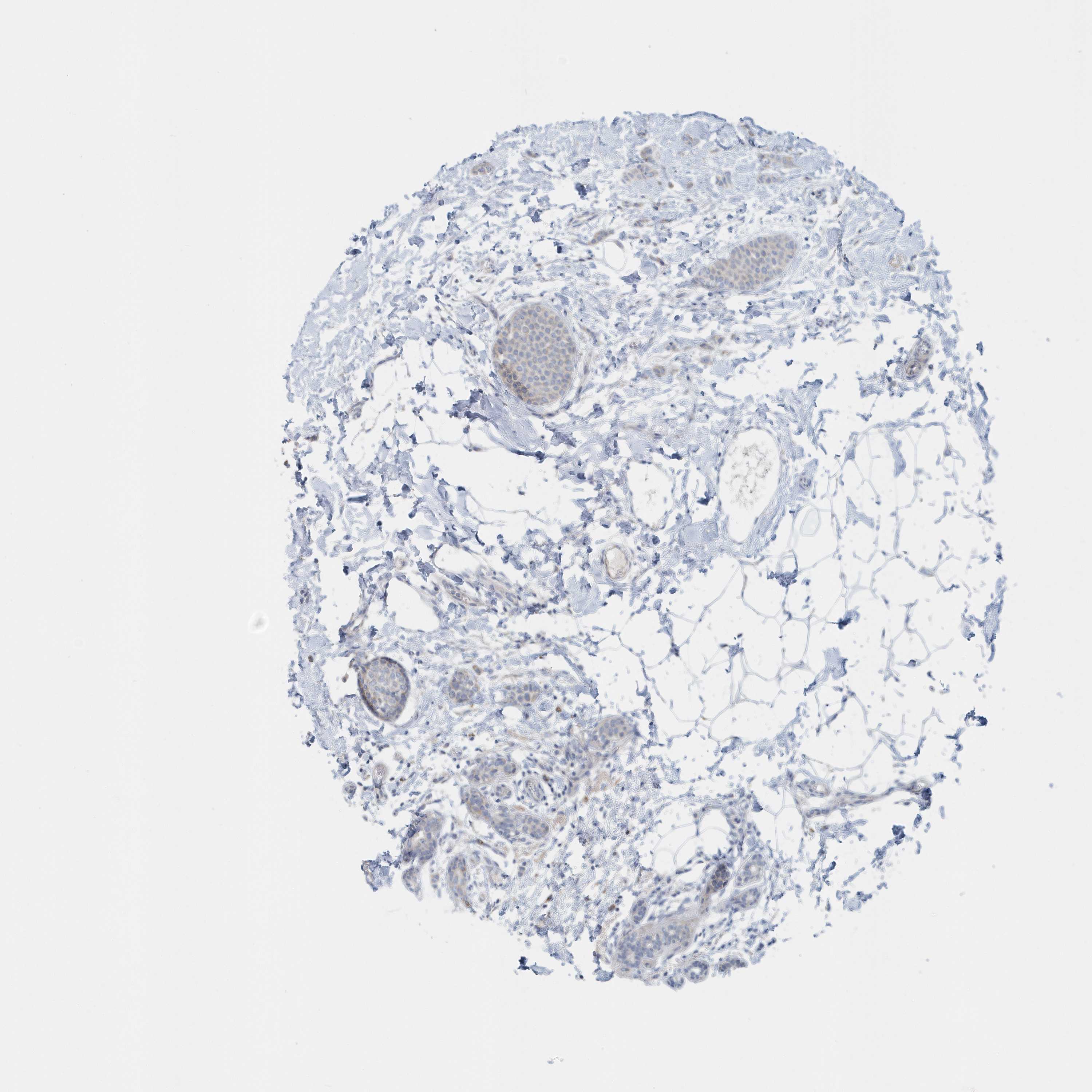 Antibody staining in the annotated cell types in the current human tissue is reported as not detected, low, medium, or high, based on conventional immunohistochemistry profiling in selected tissues. This score is based on the combination of the staining intensity and fraction of stained cells.