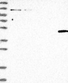 A Western blot analysis is performed on a panel of human tissues and cell lines to evaluate antibody specificity. For antibodies with unreliable result a revalidation using an over-expression lysate is performed.