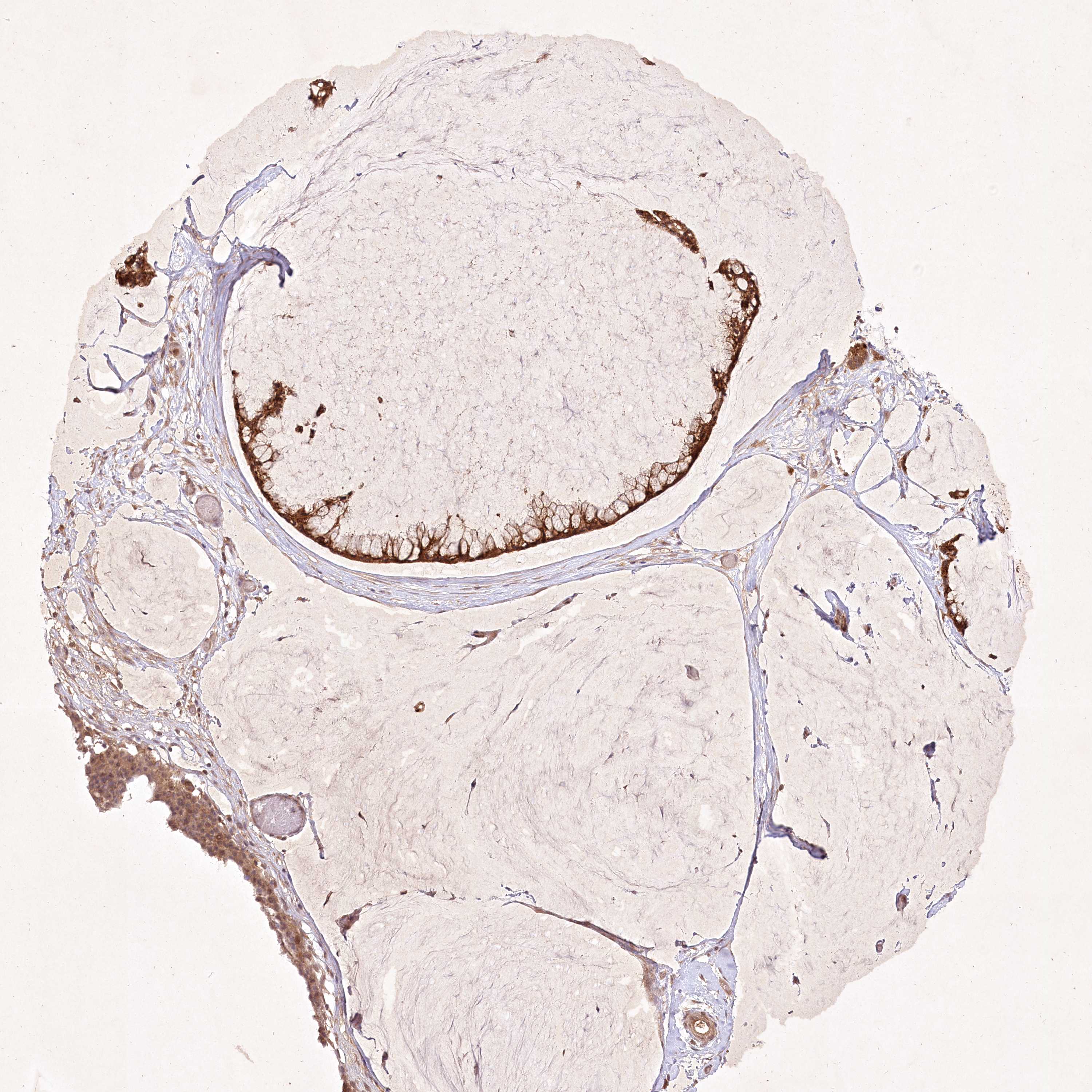 Antibody staining in the annotated cell types in the current human tissue is reported as not detected, low, medium, or high, based on conventional immunohistochemistry profiling in selected tissues. This score is based on the combination of the staining intensity and fraction of stained cells.