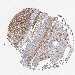 Antibody staining in the annotated cell types in the current human tissue is reported as not detected, low, medium, or high, based on conventional immunohistochemistry profiling in selected tissues. This score is based on the combination of the staining intensity and fraction of stained cells.