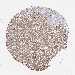 Antibody staining in the annotated cell types in the current human tissue is reported as not detected, low, medium, or high, based on conventional immunohistochemistry profiling in selected tissues. This score is based on the combination of the staining intensity and fraction of stained cells.