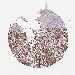 Antibody staining in the annotated cell types in the current human tissue is reported as not detected, low, medium, or high, based on conventional immunohistochemistry profiling in selected tissues. This score is based on the combination of the staining intensity and fraction of stained cells.