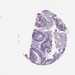 Antibody staining in the annotated cell types in the current human tissue is reported as not detected, low, medium, or high, based on conventional immunohistochemistry profiling in selected tissues. This score is based on the combination of the staining intensity and fraction of stained cells.